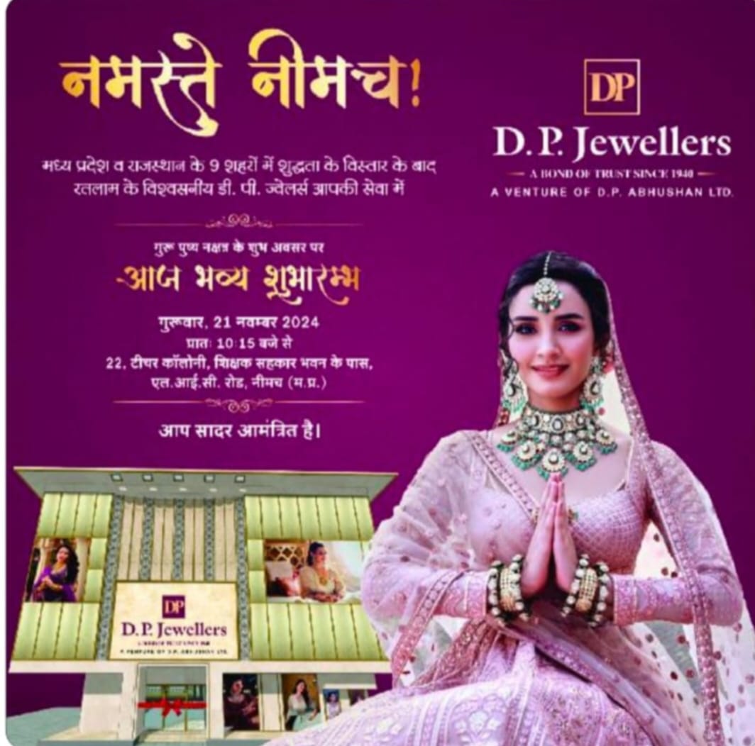 Advertisement: DP ज्वेलर्स का नीमच में धमाकेदार पदार्पण , आज होगा भव्य शुभारंभ apnews1 year ago12 months ago 0