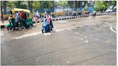 भोपाल में लोक भवन के सामने सड़क धंसी, पानी बहने से बिगड़े हालात