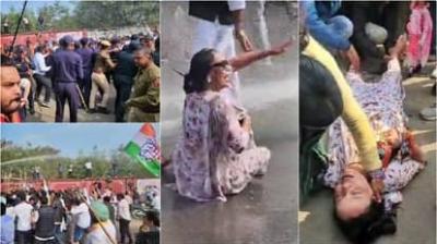 घेराव के बीच वाटर कैनन का इस्तेमाल, कई कार्यकर्ता गिरीं बेहोश