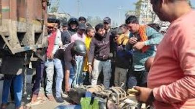 तेज रफ्तार ट्रक ने बाइक को मारी जोरदार टक्कर