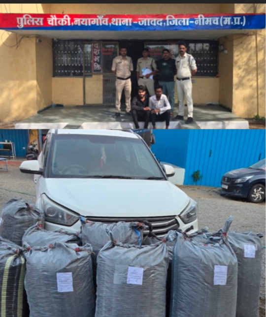 मुख्यमंत्री द्वारा अवैध मादक पदार्थ तस्करी एवं नशे के विरूद्ध चलाये जा रहे प्रदेश व्यापी विशेष अभियान के तहत पुलिस अधीक्षक अंकित जायसवाल व अतिरिक्त पुलिस अधीक्षक नवल सिंह सिसौदिया एवं अअपु जावद सुश्री निकिता सिंह के मार्गदर्शन में थाना प्रभारी जावद निरीक्षक जितेन्द्र वर्मा के नेतृत्व में चौकी प्रभारी नयागाॅव मंगल सिंह राठौड की टीम ने एक बिना नम्बर की क्रेटा कार से 200 किलोग्राम अवैध मादक पदार्थ डोडाचूरा तथा डोडाचूरा की तस्करी में संलिप्त 02 आरोपियों को गिरफ्तार किया है।