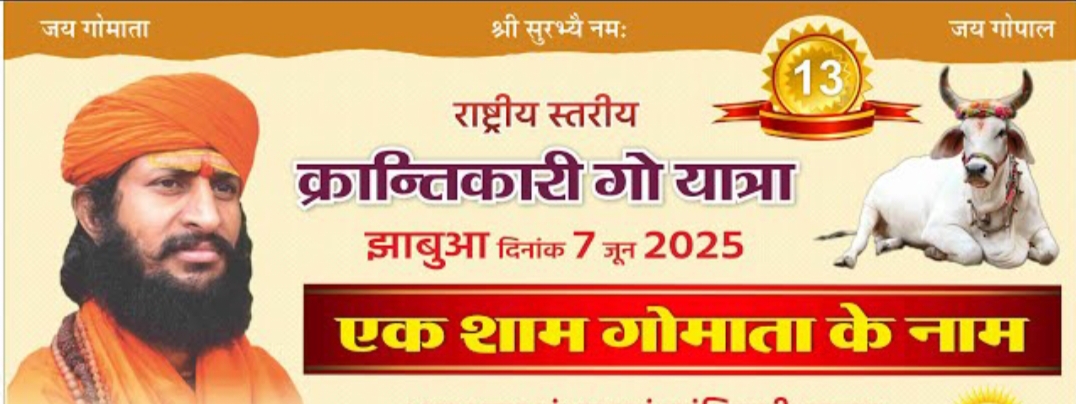 गो क्रांति यात्रा कल शनिवार 7 जून को सायंकाल 4:00 बजे कालका माता मंदिर से झाबुआ शहर में