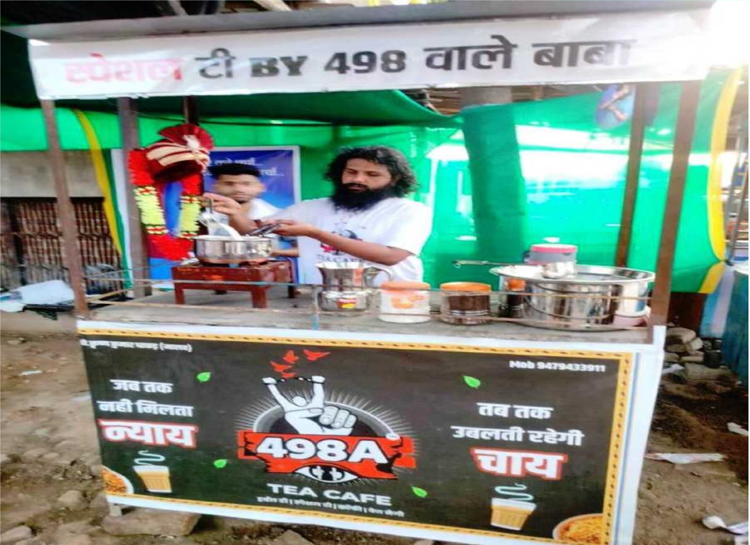 इसीलिए खोला यह कैफे : पत्नि द्वारा लगाए गए 498ए के झूठे प्रकरण से प्रताड़ना झेल ही रहा हूँ कि अब 125 की धारा डबल झेलना पड़ रही है और इसी प्रताड़ना से तंग आकर मैने फैसला लिया है कि अब जहां कानून का दुरूपयोग कर मुझे फंसाने की साजिश रची गई है उसी क्षेत्र में ‘498ए टी कैफे’ के नाम से चाय बेचकर कानून के साथ निष्पक्ष लड़ाई लड़ता रहुंगा, और इसलिए मैंने यह भी स्लोगन लिखा है कि ‘जब तक नही मिलता न्याय, तब तक उबलती रहेगी चाय’।