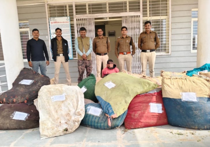 नीमच। AP NEWS EXPRESS अवैध मादक पदार्थ के विरुद्ध चलाये जा रहे अभियान के तहत अतिरिक्त पुलिस महानिदेशक एवं पुलिस महानिरीक्षक म उज्जैन झोन उज्जैन, उप पुलिस महानिरीक्षक रतलाम रेंज रतलाम व पुलिस अधीक्षक अंकित जायसवाल के निर्देशन, अतिरिक्त पुलिस अधीक्षक नवल सिंह सिसौदिया एवं अनुविभागीय अधिकारी पुलिस जावद रोहित राठौर के मार्गदर्शन व थाना प्रभारी रतनगढ़ निरीक्षक मनोज सिंह जादौन के नेतृत्व में रतनगढ़ पुलिस टीम ने मुखबिर ड्रोन सर्चिंग कार्यवाही कर लुहारिया जाट में कपास की फसल की आड़ में अवैध अफीम की खेती का खुलासा कर 9.76 क्विंटल अवैध मादक पदार्थ अफीम के छोटे बडे 11600 नग हरे पौधे जप्त कर आरोपी को गिरफ्तार किया है। पुलिस के अनुसार ड्रोन से की गई सर्चिंग से ग्राम लौहारिया जाट में आरोपी हिरालाल पिता घिसालाल माली उम्र 43 साल निवासी ग्राम लौहारिया जाट के कब्जे वाले खेत पर कपास के पौधो की खेती के बीच में अवैध मादक पदार्थ अफीम की खेती पाई गई, जिनका मौके पर विधिवत तौल करते कुल वजनी 09 क्विटल 76 किलोग्राम अफीम के अवैध हरे पौधे (कुल 11,600 नग) होना पाये गये, जिन्हे बरामद किया गया। कानूनी औपचारिकताएं पूरी करने के बाद बरामद अफीम के हरे गिले पौधे को एनडीपीएस अधिनियम 1985 की प्रासंगिक प्रावधानों के तहत जब्त कर आरोपी को गिरफ्तार किया गया।