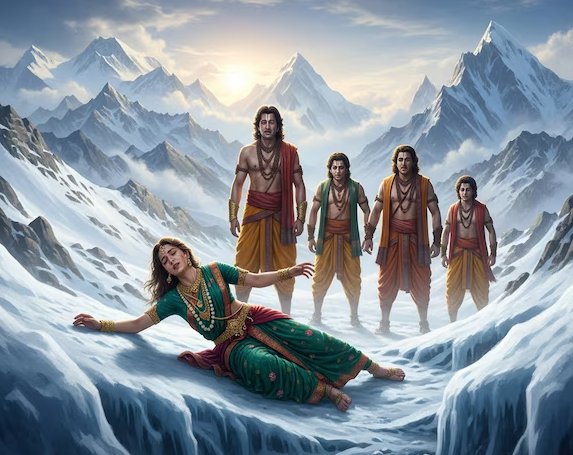 इस रास्ते पर जब उन्होंने चढ़ाई शुरू की तो एक के बाद एक परेशानी आनी शुरू हो गई. ये रास्ता कतई आसान नहीं था. हिमालय के आगे के रास्ते पर सबसे पहले द्रौपदी लड़खड़ाईं. फिर गिरीं. पता लगा कि उनकी सांस जा चुकी है. अब वह सशरीर स्वर्ग नहीं पहुंचेंगी. तो ऐसा क्या हुआ था.