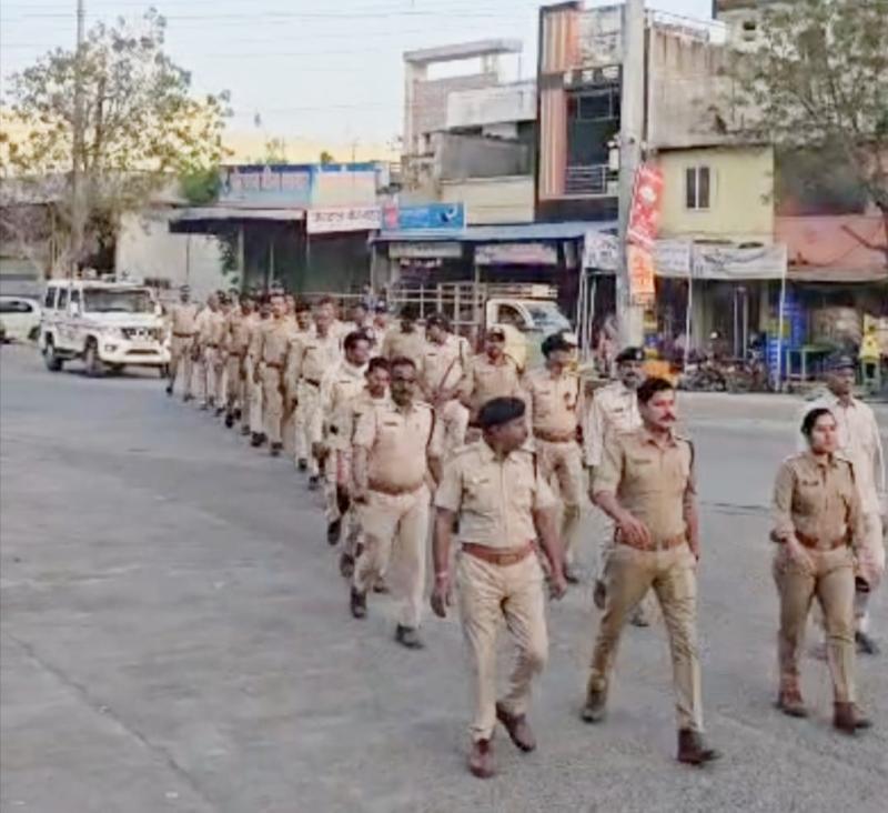 रंगतेरस : पुलिस बल ने निकला फ्लैग मार्च, ड्रोन एवं सीसीटीवी कैमरे रखेंगे निगरानी