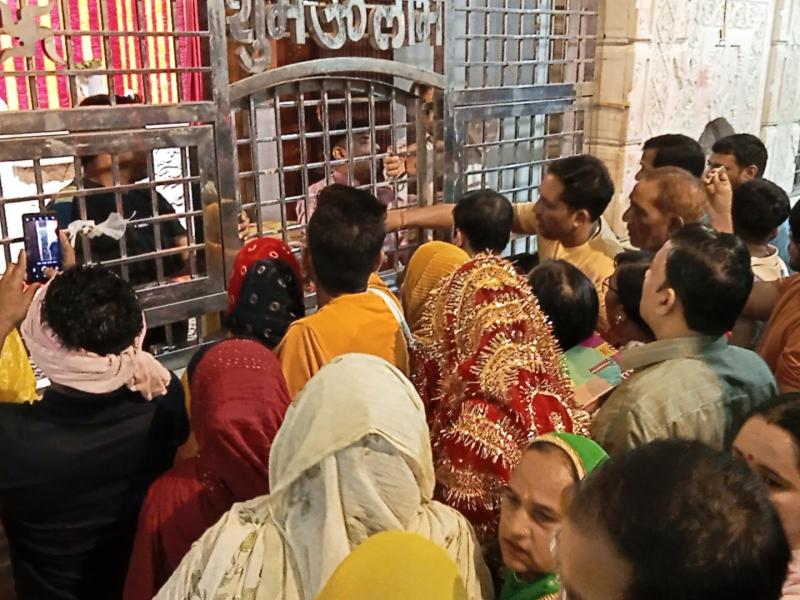 नवरात्रि के पहले दिन मंदिरों में रौनक, भीमेश्वरी देवी मंदिर में सुरक्षा कड़ी