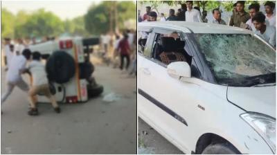 कर्मचारियों के प्रदर्शन ने लिया हिंसक रूप: नोएडा फेज-2 में तोड़फोड़, गाड़ियों में आग, सुरक्षा कड़ी