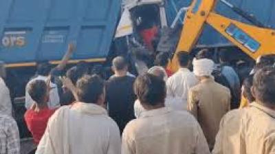 हाईवे पर जोरदार टक्कर, डंपर ड्राइवर केबिन में फंसा