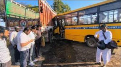 बालोतरा: स्कूल बस और ट्रक में भीषण टक्कर, 5 बच्चों की हालत नाजुक; खाई में पलटी बस